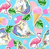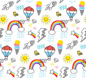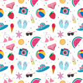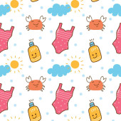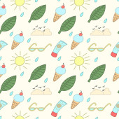 ładny wektor bez szwu ilustracja z ikonami lato, parasole, słodycze