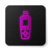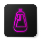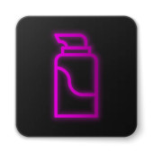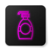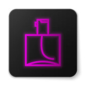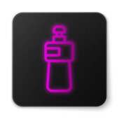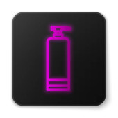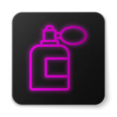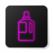 Świecąca neonowa butelka po goleniu z ikoną rozpylacza na białym tle. Kolońska ikona sprayu. Męska butelka perfum. Czarny kwadrat. Ilustracja wektora.