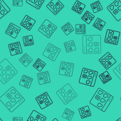 Tabletki czarnej linii w blistrze ikona odizolowany bezszwowy wzór na zielonym tle. Opakowanie leku medycznego na tabletki, witaminy, antybiotyki, aspirynę. Ilustracja wektora.