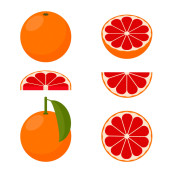 Gruszki z liśćmi pod różnymi kątami. Zestaw kolorowych ikon. Ilustracja wektora.