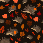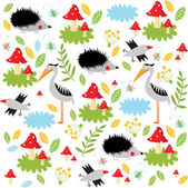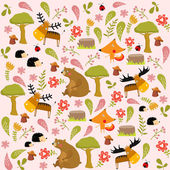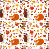 Drukuj. Wzór wektorowy z kreskówkowymi wiewiórkami. Jesienny wzór. Tło lasu.