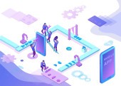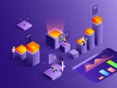 Zdjęcie "Koncepcja automatyzacji procesów robotycznych z robotami pracującymi z danymi, przenoszącymi broń, pobierającymi informacje ze stron internetowych, cyfrową usługą technologiczną, ilustracją wektora izometrycznego 3D" może być wykorzystywane do celów osobistych i komercyjnych zgodnie z warunkami zakupionej licencji Royalty-free. Obraz jest dostępny do pobrania w jakości wysokiej rozdzielczości do 5760x3840.