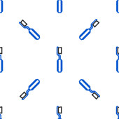 Linia ikona pędzla odizolowany bezszwowy wzór na białym tle. Kolorowy koncept. Wektor.