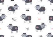 Zdjęcie "Bezbarwny wzór z czarnych baranów i białe owce wypasu trawy w zielonym polu w stylu kreskówki. Wielokolorowe stokrotki, kwiaty róż i tulipanów." może być wykorzystywane do celów osobistych i komercyjnych zgodnie z warunkami zakupionej licencji Royalty-free. Obraz jest dostępny do pobrania w jakości wysokiej rozdzielczości do 5760x3840.