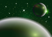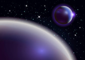 Głębokie tło. Wszechświat z planetami i jasnymi gwiazdami. Wpływ światła halo na ciemne tło, błyski światła. Ilustracja wektora.
