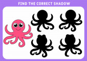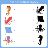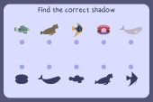 Gra edukacyjna dla dzieci. Znajdź właściwy cień. Piekieł morskich. Mini-gra dla dzieci.
