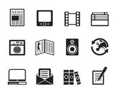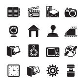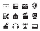 sylwetka telefon komórkowy wydajności, internet i biuro ikony