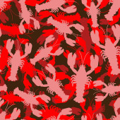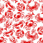 kreskówka bezszwowe tło z obiekt owoce morza: krewetki, kraby, Homar, raki