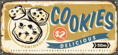 Projekt plakatu cookies wykonany w stylu retro. Vintage wektor z czerwonym tle.