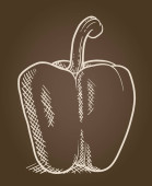 Świeża zielona papryka. Wegetariański element wzornictwa dla rynku rolnego, wegetariański przepis żywności. Ilustracja wektora izolowana nad czernią.