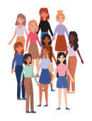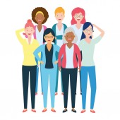 Kobiece kreskówki o wzornictwie wektorowym różnorodności kulturowej