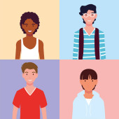 Kreskówki kobiet i mężczyzn o wzornictwie wektora różnorodności kulturowej