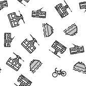 Łóżko Sypialnia Meble wektor Płynny wzór cienka linia ilustracja