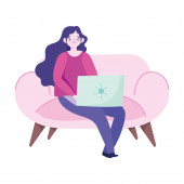 młoda kobieta siedzi na krześle kreskówki odizolowany projekt ikony