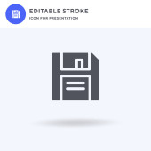 Ikona dyskietki wektor, wypełniony płaski znak, solidny piktogram izolowany na białym, ilustracja logo. Ikona dyskietki do prezentacji.