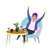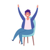 młody człowiek postać siedzi na krześle odizolowany projekt ikony