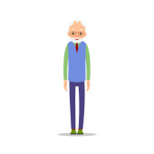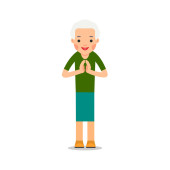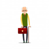 Staruszku. Starszy mężczyzna wstaje i wciąż opuszcza ręce. Ilustracja kreskówki izolowane na białym tle w płaskim stylu. Pełny portret starego człowieka, starszego lub dziadka