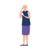 Zdjęcie "Staruszka. Starsza kobieta stoi podnosząc jego ręce i trzymając jego głowę. Ilustracja odizolowana na białym tle w płaskim stylu. Portret starszej pani, starszej lub babci" może być wykorzystywane do celów osobistych i komercyjnych zgodnie z warunkami zakupionej licencji Royalty-free. Obraz jest dostępny do pobrania w jakości wysokiej rozdzielczości do 5760x3840.