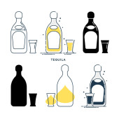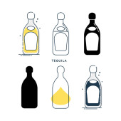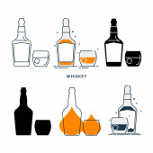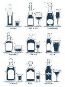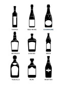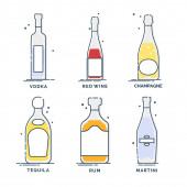 Płaska ikona z alkoholem butelkowym na białym tle. Imprezowy drink. Znak baru. Odizolowany obiekt. Kolekcja graficzna. Wódka, wino, szampan, whisky, alkohol, piwo, tequila, rum, martini. Napoje w pubie