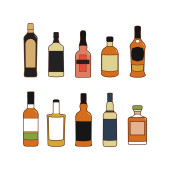 Zdjęcie "Zestaw butelek i kieliszków z whisky w różnych stylach. Wzorcowy napój alkoholowy do restauracji, baru, pubu. Impreza symboli. Kolekcja jeden drink. Izolowana płaska ilustracja na białym tle." może być wykorzystywane do celów osobistych i komercyjnych zgodnie z warunkami zakupionej licencji Royalty-free. Obraz jest dostępny do pobrania w jakości wysokiej rozdzielczości do 5760x3840.