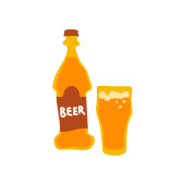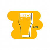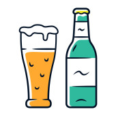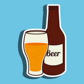 Butelka i szklane piwo linii sztuki w stylu płaskim. Restauracja alkoholowa ilustracja do projektowania uroczystości. Element konturu. Ikona konturu napoju. Izolacja na białym tle