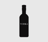 Sylwetka butelki wódki. Rysunek alkoholu. Czarny biały. Element dekoracji. Projekt menu baru. Symbol, logo. Izolacja ilustracja białe tło. Element do picia