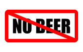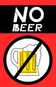 Zakaz picia alkoholu. Nie podpisuj piwa. Kolorowa ilustracja szklanki piwa w czerwonym skrzyżowanym kole. Zakaz napojów płaska linia w nowoczesnym stylu. Ikona symbolu ostrzeżenia. Przestań pić, ostrzeżenie o alkoholu ilustracja