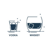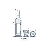 Butelka wódki linii sztuki, świetny design do wszelkich celów. Kreatywny element graficzny. Modny design. Znak prostoty minimalizmu. Alkoholiczny produkt do ilustracji restauracji. Odizolowany na białym tle