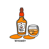 Zdjęcie "Butelka whisky i szklanka z kanapkami. Oliwka, ser, chleb, łosoś lub mięso. Zestaw napojów alkoholowych i tapas. Odizolowana płaska ilustracja. Projekt artystyczny linii do restauracji i pubu" może być wykorzystywane do celów osobistych i komercyjnych zgodnie z warunkami zakupionej licencji Royalty-free. Obraz jest dostępny do pobrania w jakości wysokiej rozdzielczości do 5760x3840.