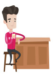 Mężczyzna siedzący ze skrzyżowanymi nogami przyciąga uwagę podnosząc rękę do góry. Ilustracja w płaskim stylu. Izolacja