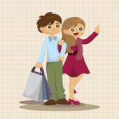 Młody mężczyzna pokazuje puste kieszenie bez pieniędzy, w odpowiedzi dziewczyna informuje, że ma kartę kredytową, którą trzyma w ręku. Ilustracja w płaskim stylu. Izolacja