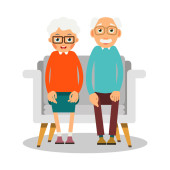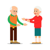 Stara para. Dwie osoby w podeszłym wieku stoją. Starszy mężczyzna i kobieta trzymają się razem i przytulają się. Ilustracja izolowana na białym tle w płaskim stylu