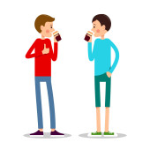Zdjęcie "Piję kawę. Mężczyzna i kobieta stoją i piją gorący napój. Ilustracja w płaskim stylu. Współcześni ludzie pijący kawę. Izolacja." może być wykorzystywane do celów osobistych i komercyjnych zgodnie z warunkami zakupionej licencji Royalty-free. Obraz jest dostępny do pobrania w jakości wysokiej rozdzielczości do 5760x3840.