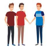 Zdjęcie "Uszczęśliwić ludzi w izolacji. Młody, szczęśliwy człowiek stojący i przytulający się do siebie. Ilustracja rysunkowa na białym tle w płaskim stylu" może być wykorzystywane do celów osobistych i komercyjnych zgodnie z warunkami zakupionej licencji Royalty-free. Obraz jest dostępny do pobrania w jakości wysokiej rozdzielczości do 5760x3840.