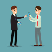 Zdjęcie "Komunikacja biznesowa. Biznesmen przenosi papierowe archiwum do pracownika. Szef pokazuje podwładnego dokumentu. Dwóch biznesmenów pracujących w biurze. Płaska ilustracja odizolowana na tle." może być wykorzystywane do celów osobistych i komercyjnych zgodnie z warunkami zakupionej licencji Royalty-free. Obraz jest dostępny do pobrania w jakości wysokiej rozdzielczości do 5760x3840.