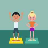 Starzy ludzie ćwiczą z durniami. Emeryci i gimnastycy. Starsi ludzie robią poranne ćwiczenia. Dziadkowie i Sport. Ilustracja kreskówki izolowane na białym tle w płaskim stylu