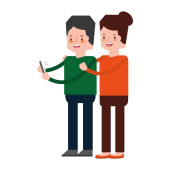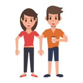 Zdjęcie "Para na telefonach. Młody mężczyzna i kobieta stoją z telefonami w rękach i patrzą na ekrany. Piękni uśmiechnięci ludzie. Ilustracja izolowana w białym tle w płaskim stylu" może być wykorzystywane do celów osobistych i komercyjnych zgodnie z warunkami zakupionej licencji Royalty-free. Obraz jest dostępny do pobrania w jakości wysokiej rozdzielczości do 5760x3840.