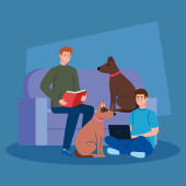 Zdjęcie "Para ze zwierzętami. Szczęśliwy zwierzak w ramionach mężczyzny i kobiety. Piękna rodzina z kotem i psem. Atrakcyjny styl życia. Wypoczynek ze zwierzętami. Ilustracja odizolowana na tle w płaskim stylu" może być wykorzystywane do celów osobistych i komercyjnych zgodnie z warunkami zakupionej licencji Royalty-free. Obraz jest dostępny do pobrania w jakości wysokiej rozdzielczości do 5760x3840.
