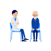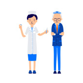 Zdjęcie "Starszy mężczyzna pochylony od bólu pleców, trzyma obolałe miejsce ręką. Pielęgniarka lub lekarz oferuje mu laskę. Ilustracja postaci odizolowanych na białym tle w płaskim stylu" może być wykorzystywane do celów osobistych i komercyjnych zgodnie z warunkami zakupionej licencji Royalty-free. Obraz jest dostępny do pobrania w jakości wysokiej rozdzielczości do 5760x3840.