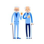 Zdjęcie "Pozdrowienia od staruszka. Dwóch starszych mężczyzn wita się nawzajem, wyciągając ramiona. Szczęśliwej emerytury. Koncepcja tradycyjnych relacji podczas spotkania biznesowego. Ilustracja odizolowana na tle w płaskim" może być wykorzystywane do celów osobistych i komercyjnych zgodnie z warunkami zakupionej licencji Royalty-free. Obraz jest dostępny do pobrania w jakości wysokiej rozdzielczości do 5760x3840.