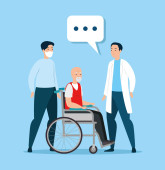 Zdjęcie "Lekarze i pielęgniarka przy łóżku chorego starca. Pielęgniarka jest gotowa do wykonania zastrzyku. Badanie lekarskie. Opieka zdrowotna, usługi medyczne w szpitalu. Medyczna ilustracja w płaskim stylu." może być wykorzystywane do celów osobistych i komercyjnych zgodnie z warunkami zakupionej licencji Royalty-free. Obraz jest dostępny do pobrania w jakości wysokiej rozdzielczości do 5760x3840.