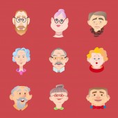 Ustaw awatary na starszych ludzi. Kit awatara starszych ludzi. Ilustracja kreskówki selekcji izolowane na białym tle w płaskim stylu