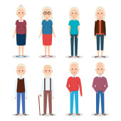 Starzy ludzie. Zestaw różnorodnych osób starszych z avatarami izolowanymi na białym tle. Ludzie w podeszłym wieku. Starsi mężczyźni i kobiety. Ilustracja w płaskim stylu