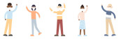 Zdjęcie "Zestaw młodych ludzi izolowanych na białym tle / Cute i prosty płaski styl kreskówki. Wektor." może być wykorzystywane do celów osobistych i komercyjnych zgodnie z warunkami zakupionej licencji Royalty-free. Obraz jest dostępny do pobrania w jakości wysokiej rozdzielczości do 5760x3840.