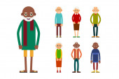 Zestaw młodych ludzi izolowanych na białym tle / Cute i prosty płaski styl kreskówki. Wektor.