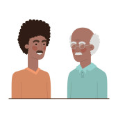 Zdjęcie "Dwóch Afrykańskich starszych mężczyzn wstaje i uśmiecha się, a jeden podnosi rękę na powitanie. Ilustracja w płaskim stylu. Izolacja" może być wykorzystywane do celów osobistych i komercyjnych zgodnie z warunkami zakupionej licencji Royalty-free. Obraz jest dostępny do pobrania w jakości wysokiej rozdzielczości do 5760x3840.