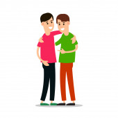 Zdjęcie "Młody człowiek ilustracja kreskówki izolowane na białym tle w płaskim stylu. Gość stoi i wita z podniesioną ręką. Zabawna postać z kreskówki." może być wykorzystywane do celów osobistych i komercyjnych zgodnie z warunkami zakupionej licencji Royalty-free. Obraz jest dostępny do pobrania w jakości wysokiej rozdzielczości do 5760x3840.
