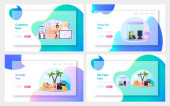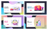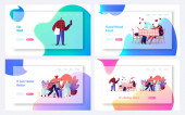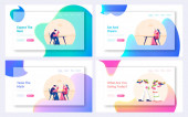 Postacie Oglądaj kursy wideo, Online Edukacja Landing Page Template Set. Nauka na odległość dla studentów, wirtualne webinaria