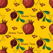 Rosz hashanah Żydowski Nowy rok świąteczny zestaw do projektowania kart okolicznościowych. Karty okolicznościowe z symbolami świąt żydowskich Rosz Hashana, Nowy Rok. Shana Tova - Błogosławieństwo Nowego Roku. Ilustracja wektora