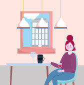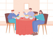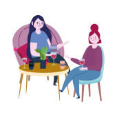 społeczna zdystansowana restauracja lub kawiarnia, osoby rozmawiające przy stole zachować odległość, covid 19 koronawirus, nowe normalne życie